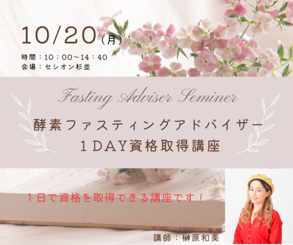 『酵素ファスティングアドバイザー1day資格取得講座』の東京開催が決定しました。
