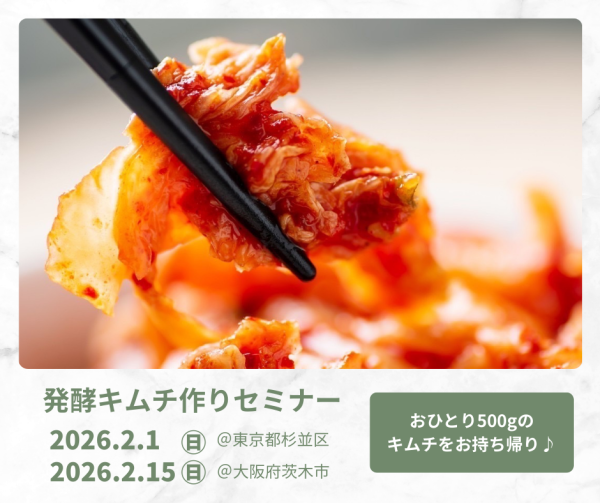 今年3月に開催し、多くの皆さまにご参加いただいた「発酵キムチ作りセミナー」を、来年2月に東京・大阪で開催いたします。